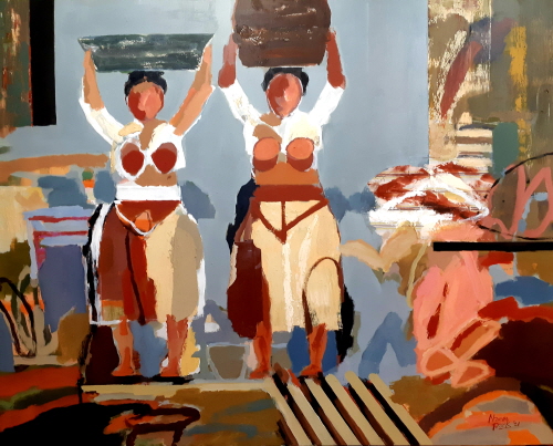 지금은 행상을 하는 여인이 없다. 머리에 자배기를 이고 새벽을 가르는 행상의 외침도 지금은 없다. 우리들의 어머니 그 어머니의 어머니가 그렇게 골목을 휘젓고 외치며 살아야 했던 그 모습을 우리는 멀리 잊고 있다. 일제 암울한 시대로부터 해방과 6.25의 전화 속 그 격변기를 살아온 우리들 어머니의 그 강인한 여인상을 우리는 기억해야 한다. 그것이 역사이기 때문이다. 여성은 곤경에서 강해지는 잠재력을 가진 것 같다. 60년 가까이 집착 해온 “행상여인”은 그 강인한 한국의 여인상을 화폭에 구현함으로써 길이 기억하고자 하는 것이다.
