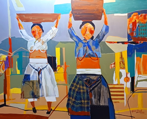 행상여인 Peddler Woman_162.0x130.0cm_Acrylic Collage on canvas_2023