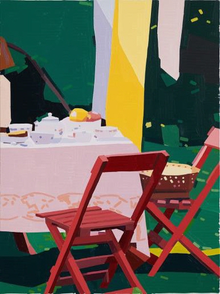 이는 작가가 영화적인 이미지, 즉 인물, 정물, 풍경이 어우러지는 방식, 혹은 신체, 사물, 색감의 병치, 그리고 일상을 구성하는 질감 등 다양한 주제와 장면에 영감을 받아 작업하고 있다는 것과 같은 선상에 있다. 그의 작품은 형태와 색감, 회화적 과정, 사물이 예술 작품이 되는 순간을 중심으로 전개되며, 대상과 그 대상에 대한 해석적 묘사 사이의 미세한 경계에 놓여 있다. 이러한 의미에서 전시 제목인 《블루 아워》는 회화적 관점에서 바라본 일상의 전형, 푸르스름한 빛이 확산되어 주변을 고요한 분위기와 감정의 색조로 물들이는 황혼의 일상을 의미한다. 특히 야나이가 이번 전시에서 처음 선보이는 작품은 밝은 햇빛과 한 폭의 그림 같은 배경에 물들어 있는 일상적인 행동을 긴 호흡으로 묘사한 에릭 로머(Éric Rohmer)의 영화 속 장면에서 영감을 받았다.