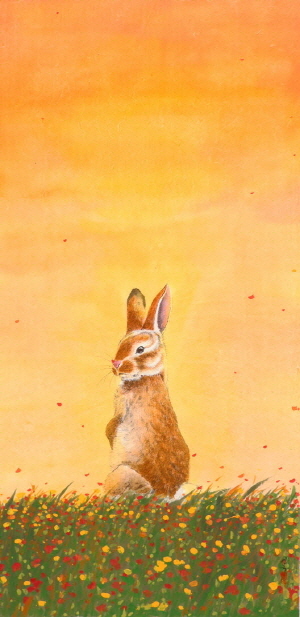 태양을 간직한 토끼_한지에 먹, 채색_72x35cm_2023
