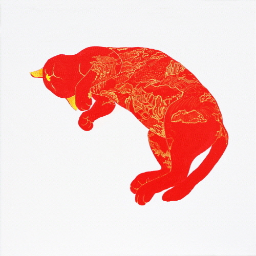 妙猫0914_캔버스에 아크릴, 금분_40x35cm_2022