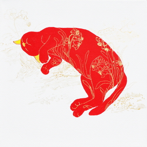 妙猫0206_캔버스에 아크릴, 금분_30x30cm_2023