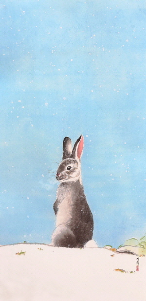 산토끼 2023_한지에 먹, 채색_72x35cm_2022