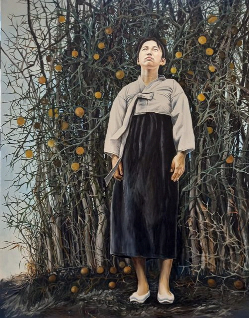 탱자나무 아래에서_116.8x80.3cm_캔버스 위에 오일 페인트_2023