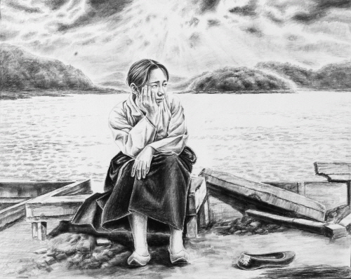 버선이 벗겨지던날_90x72cm_연필,콘테_2022