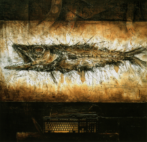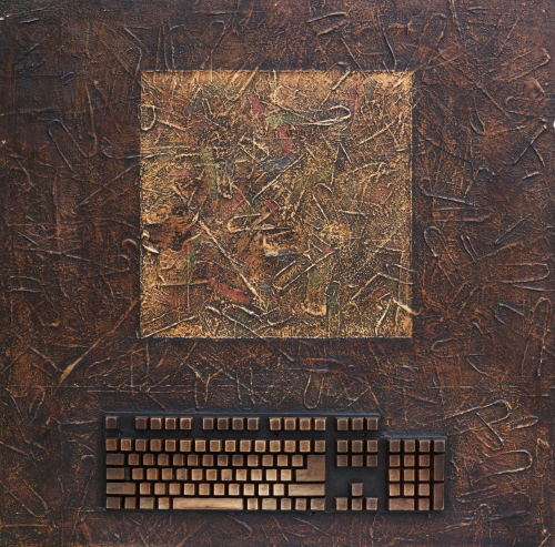 그러한 과정을 거치면서 신체적인 힘과 그를 시각적으로 받아내는 질감 표현의 추상적인 표현의 세계로 들어서게 됐다. 널따란 붓의 흔적과 그에 따른 질감이 도드라져 보이는 추상적인 작업이 이에 해당하는데, 반복되는 붓질이 겹치면서 질감 위에 또 다른 질감이 덧쌓이는 중층의 이미지가 형성되었다. 이는 신체적인 힘과 더불어 일정한 리듬을 타는 붓질이 지어내는 표정을 통해 감정 및 의식의 흐름을 엿볼 수 있는 작업이다. 추상적인 공간을 향해 행해지는 이와 같은 일련의 표현행위는 시각적인 이미지가 지어내는 순수한 표현 감정을 드러내는 일이기도 하다. 구체적인 형태가 없음에도 무수히 존재하는 붓질과 질감이 지어내는 미묘한 울림은 시각적인 이해를 뛰어넘는 감성적인 표현이다. 이렇듯 추상적인 작업은 일종의 현실 인식에 몰입해온 상황을 타개하기 위한, 즉 자기 정화의 한 방법이라고도 할 수 있다. 예술의 순수성에 대한 성찰이었는지 모른다. 이어 컴퓨터 자판을 이용하는 오브제 작업으로 넘어오게 된다. 전자 문명을 상징하는 컴퓨터와 관련한 부품들은 현대미술에서 흔히 쓰이는 오브제이다. 전자회로라든가 그에 따른 각종 부품 그리고 자판 등 일련의 오브제는 현대라는 시제를 가장 명징하게 드러내는 상징성을 가진다. 상상을 초월하는 정보를 주고받는 컴퓨터 자판이야말로 세상과 소통하는 도구로서의 상징적인 이미지가 크다. 큐빅 모양의 자판을 하나하나 분리해 이리저리 이어 붙여 조형적인 아름다움과 더불어 상징적인 메시지를 전하고자 한다.