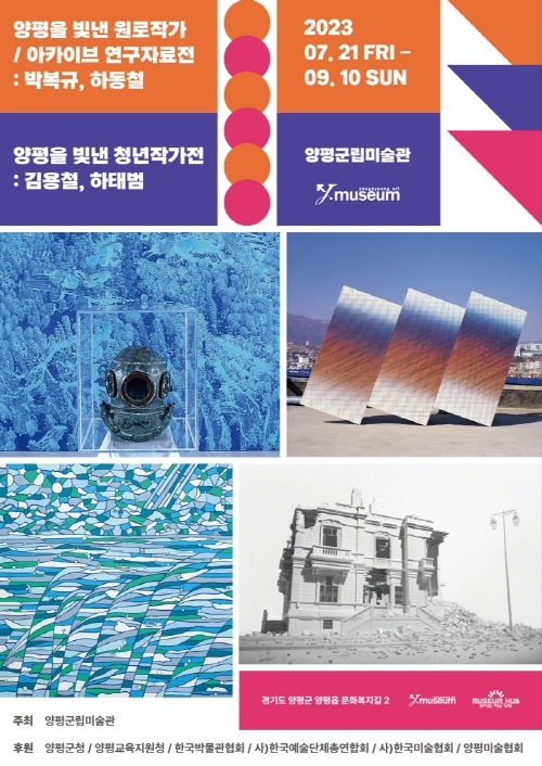 양평군립미술관은 <양평을 빛낸 원로작가>展을 개최해온 지 올해로 10회째를 맞는다. 이 전시는 양평에서 거주/활동한 작가 중에 훌륭한 원로작가를 선정, 그들의 작품세계가 구축된 수십 년간의 발자취를 추적하고 자료를 정리하여 그들의 작품을 시기별로 구분하여 그들의 작품세계를 보다 심층적으로 소개한다. ‘2023년 올해의 원로(작고)작가’는 타계하기 전까지 끊임없는 작품활동과 연구, 후학 양성을 통해 한국 미술계에 이바지한 서양화가 하동철, 박복규 작가가 선정되었다.