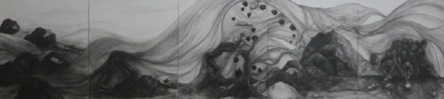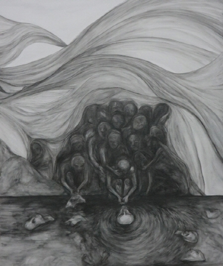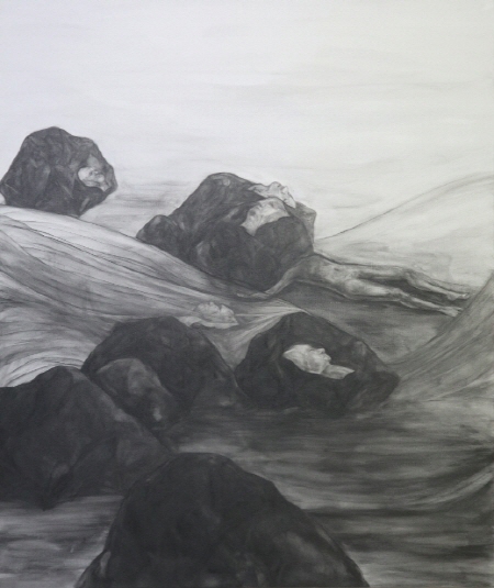연약한 장막으로...(부분이미지3)_60.6x72.7cm_캔버스에 수채목탄,연필과 과슈_2023