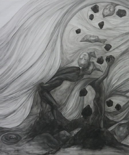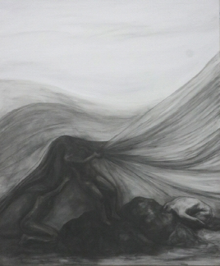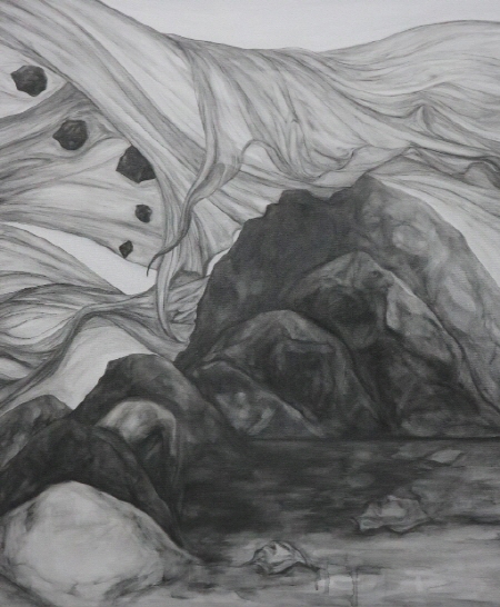 연약한 장막으로...(부분이미지1)_60.6x72.7cm_캔버스에 수채목탄,연필과 과슈_2023