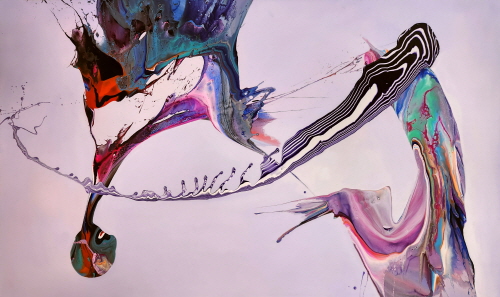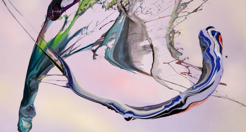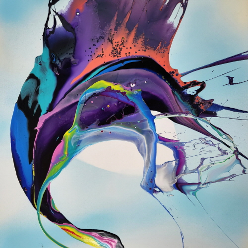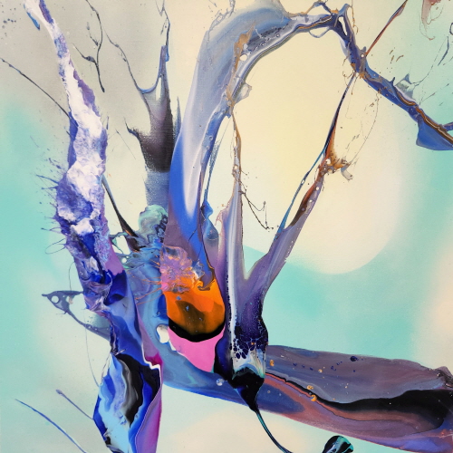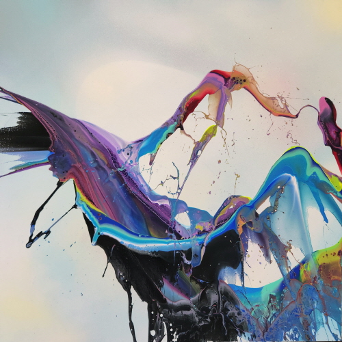신성한 선율(Sacred Melody) 그림의 주제를 신성한 선율로 정했다. 지휘자나 무용수의 몸짓이 물감과 상호작용하는 나의 몸짓(Action painting)과 유사하다. 지휘자를 통한 연주 음악들이 아다지오부터 비바체에 이르기까지 다양한 빠르기로 음색을 표현하듯 나의 율동에도 힘의 완급이 있다. 매 순간이 고유하기에 이것은 순간성 그 자체의 은유로 존재하며 매 순간이 불가해하기에 무한히 순간순간을 좇으려 할 수밖에 없다. 결과물이 나타날 때마다 획득과 상실을 동시에 경험한다. 물감을 매개체로 의도를 가지고 형과 색을 뿌리지만, 캔버스의 마지막 안착은 신의 영역이다. 다만 나는 美의 창조자가 아니라 발견자일 뿐이다. 우리는 절대자가 만들어 놓은 신성비례에 끊임없이 탐구하고 신의 모습에 다가가도록 노력하고 있다.