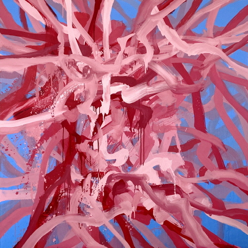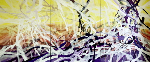 강렬하게 대비되는 색상의 자유로운 선들의 움직임은 회화의 자율성을 극대화시키며 화면에 율동감을 형성하여 내적 울림을 강하게 불러일으킨다. 작품에서는 다양한 색의 변화를 보여주는데, 원색의 느낌을 있는 그대로 표현하기보다는 유화의 농도 조절을 통해 바로 아래 깔린 레이어의 색상이 배어 나오게끔 의도하여 균형 있는 색의 조합을 보여주며 이러한 조화로움이 화면의 밀도를 높이고 화면의 깊이를 더한다. 또한 의식적으로 흩뿌려진 유화가 우연히 떨어진 지점, 의식적으로 그어진 선에서 우연히 흘러내린 유화의 흔적처럼 의도된 것과 우연한 것의 동화가 자연스러움과 새로운 가능성의 공간을 무한히 펼쳐 보인다. 이러한 자율적인 선들이 모여 응축된 큰 흐름은 평면의 화면에 힘을 실어주고 몰입시켜 선을 그려내는 과정 일체를 예술로 인식케 한다.