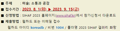 * 전시메일에 등록된 모든 이미지와 글은 작가와 필자에게 저작권이 있습니다. * vol.20230801-2023 서울국제호텔아트페어 |