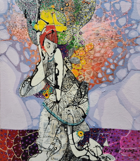 최우수상 김보영 作_ 소녀와 벌_53.0x45.5cm_Mixed media