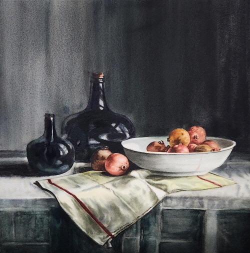 우수상 송영자 作_ 병과 석류_50.0x50.0cm_Mixed media