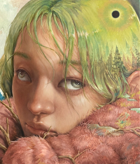 작품설명 작품 속의 비현실적인 인물들의 외모나 색채는, 자라난 환경이나 인간 관계 등으로 형성된 고정관념이나 편견에 의한 필터의 존재를 시사하고 있다. 그곳에 선악은 관계 없으며, 타인에 대한 임의적인 기대나 인상을 정해버리는 것은 누구나 무의식적으로 하고 있을 것이다. 그렇다면, 작가가 그린 인간도 작가의 주관을 통해 본 사람들의 재구성이 될 것이라고 생각하고 이 표현에 도달했다. 한편, 작품에는 일관되게 초점이 맞지 않는 눈이 그려져 있는데, 이것은 1초 후의 미래에 무엇이 일어날지조차 예지할 수 없는 인간의 불안감을 상징하고 있다. 작가 자신의 내면이나 사고의 변화와 함께 주목점도 바뀌어 왔지만, 인간의 성질이나 본능을 표현하고 싶다는 큰 축은 변하지 않는다. 우리 인간도 동물 중의 하나에 불과하다고 보고 있으며, 살아가는 것에 집착하는 모습은 바로 야성의 본능을 느끼게 한다. 이 개념을 가장 잘 반영한 것이 새로운 작품 "Adam is Adam, and Ive is Ive"다.