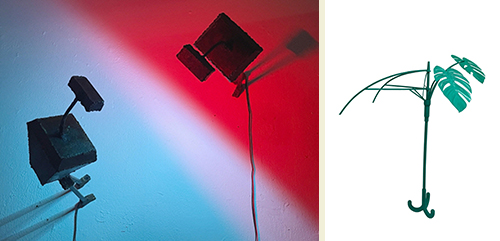 김시온 作_서로에게 주는 영향_철, LED_120x190x440(h)mm 2ea_2023 김영호 作_우산보다 몬스테라가 햇빛을 더 잘 가린다더라!_3D 프린트_900x750x830mm_2023