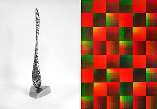 김회준 作_wish-germinate_stainless steel_45x14x11cm_2023 박예진 作_골든, 리퀴텍스, 신한, 알파_아크릴_100x72.7cm_2022