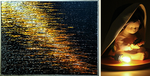 이기라 作_윤슬223_Aluminium wire_74x52cm_2022 이브 作_Dream a little Dream_레진에 아크릴 채색,LED전구_340x320x180mm_2023