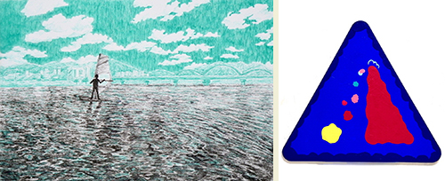 임영이 作_부유_종이에 펜_27x41cm_2023 전지인 作_Don’t kill my vibe_도로표지판_600x600mm_2023