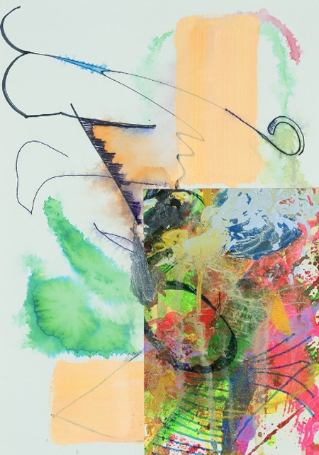 이동근 作_각막과 시선 사이 2023_종이 위에 아크릴물감, 수성건식재료, 볼펜, 마커_30x21.3cm