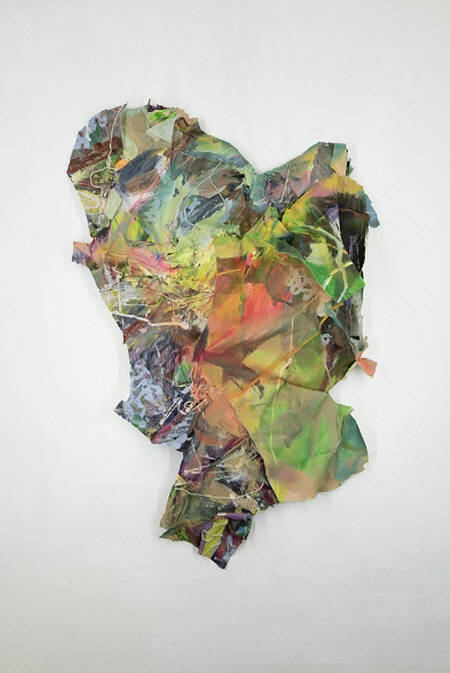이동근 作_생장한 각막 2023_천, 종이, 석고붕대, 아크릴물감, 스프레이, 레진, 본드, 실, 끈, 전선_84x109cm