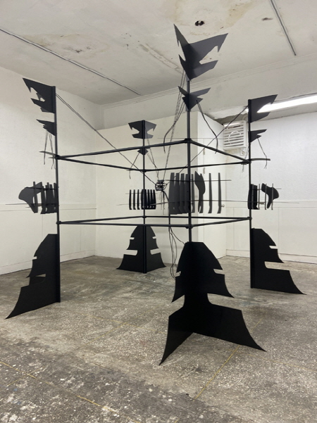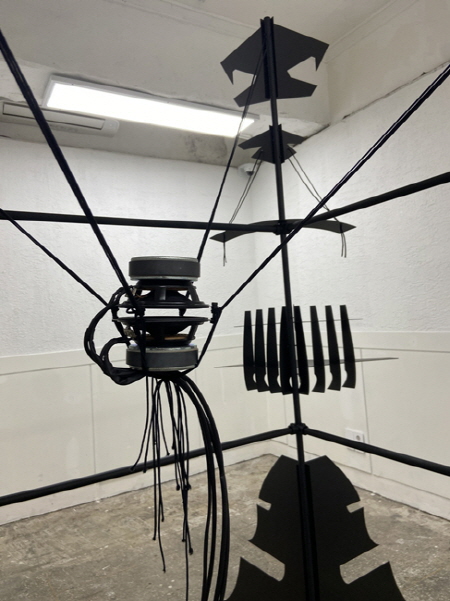 <Interaction>은 가상공간이 배경이 되었던 이전 작업 <Isomer Structure-1>(2023)을 확장한 프로젝트 연작으로, 그 시선을 현실 속 공간과 실재하는 감각으로 옮겼다. <Interaction>은 자동차에 음향장비를 싣고 여러 지역을 돌아다니며 게릴라 파티를 개최하는 클럽 컬처 중 하나인 ‘사운드 시스템 sound system’에 착안한다. 이 프로젝트는 물리적인 시공간을 잠시 점유하는 ‘파티’의 표면적인 맥락을 차용하나, 정적공간을 동적으로 변환하며 그 기저에서 주조되는 다공적 감각의 형태에 주목한다. 이번 전시 《Interaction 1》은 서울 을지로 중심부에 위치한 스페이스유닛4(을지로 143)를 대상으로 하는 <Interaction> 프로젝트의 첫 출발로서 의미를 갖는다.