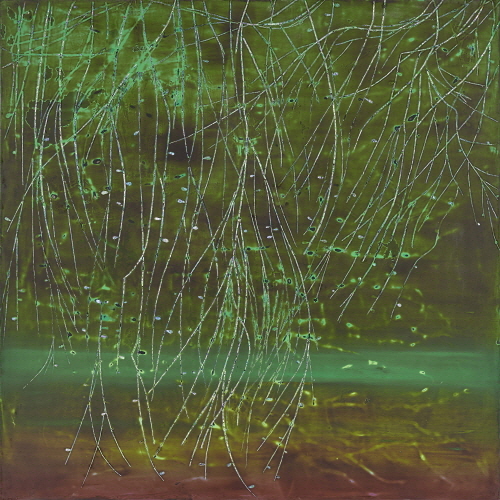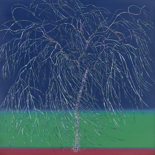 버드나무1_130x130cm_캔버스에 천연옻칠, 자개_2022
