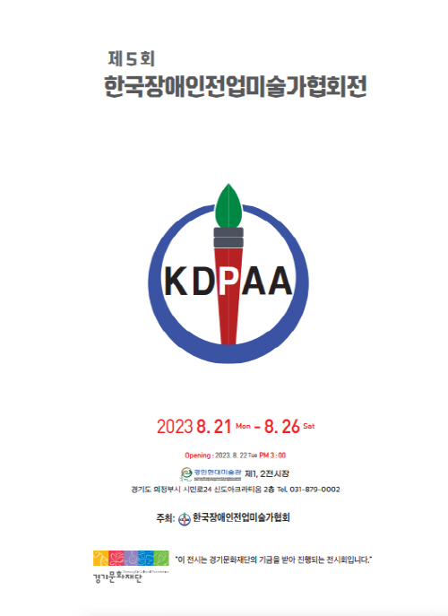 유난히 무더위가 계속되는 8월에 개최되는 제5회 한국장애인전업미술가협회 회원전은 경기문화재단에서 전시지원금을 받아 치러지는 전시회입니다.