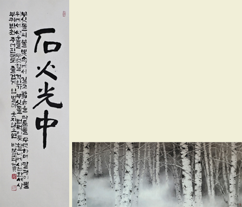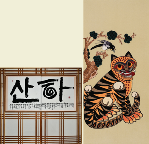 근원 이영미 作_산하_140x70cm 이정희 作_까치와 호랑이_59x64cm
