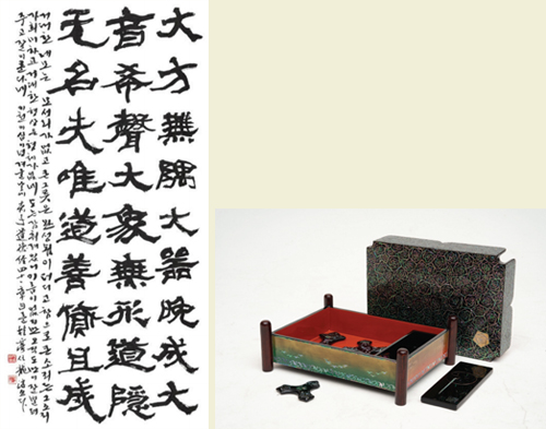 계정 임용순 作_노자도덕경 41장 구절_70x135cm_한지, 먹 조규열 作_흑장미 반짓고리함_42x31x15cm_2023