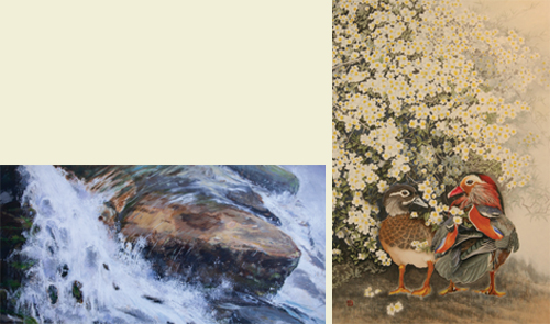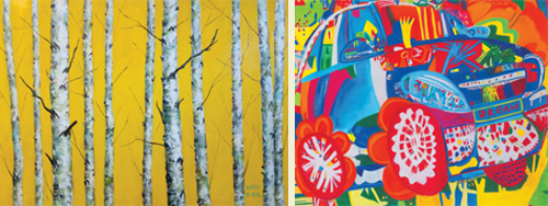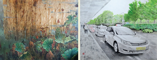 류영일 作_한 여름의 교향곡_145.5x112.1cm_아크릴 & 캔버스 제암 박양수 作_봄날의 속삭임_130.3x97.0cm_수묵+한지_2018