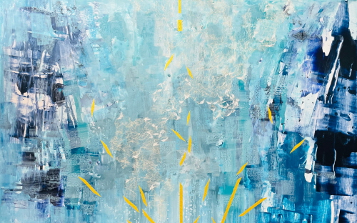 바다, 하늘, 바람, 꿈, 기억 등을 지금-여기의 감정 색에 집중하고 시각화 된 반응을 나 자신과 마주하며 투영된 이야기를 담았다. 또한, 형식적 한계를 벗어나 다양한 시도를 모색하는 회화, 설치, 행위 등의 예술영역을 확장하는 시간을 통해 예술에 대한 깊은 고민을 보여준다. 지금-여기: 삶(Here and now: Life)의 멈춤을 통해 의미와 가치를 발견하는 기회가 되기를 바라며, 작업의 소실점인 ‘예 이 용기와 위안을 줄 수 있는 것’이라는 전제하에 ‘그리다’를 넘어 ‘읽는 그림’, ‘건강한 휴식’을 담을 수 있기를 희망한다.