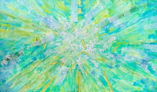 더구나 <노을이 그린 달빛>에서 확인되듯 흘러내리거나 흩어진, 얇은 물감 층을 뚫고 펼쳐진 화면은 시어(詩語)처럼 그 자체로 하나의 조형어법으로 위치한다. <비상>, <Hey, Genie>(2020)에서처럼 시지각적으로 유입된 대상을 관찰하여 그 특징을 즉각적이고 순간적으로 표현해내는 방법도 목도할 수 있다.