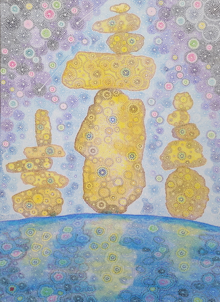 나의 관심은 내가 살고 있는 지구와 광활한 우주를 상상하며 작업을 하는 것입니다. 우주 속에 지구가 있으며 지구 속에 내가 있고 내가 곧 우주인 것입니다. 우주공간 속에 수많은 별들이 점으로 보이듯이 온 세상이 점으로 보이는 것입니다.