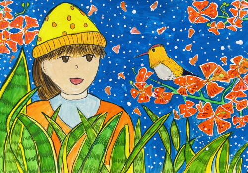 최우수상(한국아동미술협회)_초등부(3학년)_배지우_반석초등학교_세상에서 가장 예쁜 벌새와 나