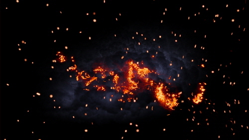 홍남기 작가노트 이번 작업은 예측하기 힘든 동시대에 일어난 재난으로 파괴된 자연을 시간과 순환이라는 개념을 적용하여, 프로젝션 맵핑의 형태로 가상공간에서 재현한다. 그을린 나무 더미 위에 3차원 그래픽 과정을 거쳐 만들어진 생성과 소멸의 움직임들이 반복적으로 하나의 테이크(take)에 등장하며, 비정형 된 풍경을 탐구한다.