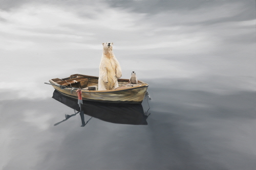 정성준 작가노트 나는 동물들이 그들이 꿈꾸는 유토피아를 찾아 떠나는 모험과 여정을 그린다. 그림 속에는 펭귄과 북극곰, 백마, 여우원숭이 등 여러 동물들이 등장 하는데 그들은 어느 한 지역에 국한되지 않고 여러 지역을 돌아 다니며 때로는 즐겁기도 하고 때로는 슬프기도 하다. 사람들이 사는 도시여행은 그들이 가장 즐거워하는 여행지이다. 그들은 낯선 도시풍경에 호기심을 느끼기도 하고 재미있는 사람들 세상에 흥미를 느끼기도 한다. 때로는 여우 원숭이들이 길에 떨어져 있는 쓰레기를 사람을 대신해 치워 주기도 한다. 그러나 우리들은 그런 그들에게 전혀 관심을 갖지 않는다. 그럼에도 불구하고 동물들의 여행은 계속된다. 과연 그들이 가고자 하는 곳은 어디일까? 그들만이 꿈꾸는 유토피아는 어떤 곳의 모습일까? 그들만이 살기 좋은 평화로운 곳일까? 아니면 사람들과 조화롭게 어울리며 살아 갈 수 있는 곳일까?