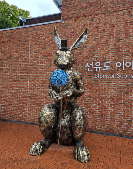 <선유봉> 선유도는 본래 선유봉이라는 작은 봉우리 섬이었다. 일제 강점기에 홍수를 막고 길을 포장하기 위해 암석을 채취하면서 깎여 나갔다고 한다. 1978년부터 2000년까지 정수장으로 사용되다가 그해 12월에 폐쇄되어 선유 정수장 시설을 활용한 재활용 생태공원으로 2002년에 개장한 '선유 공원' 이다. 이번 선유도 전시회에서 이곳의 역사성을 알리는 작품으로 '선유봉'을 재현하려 만든 오브제이다.
