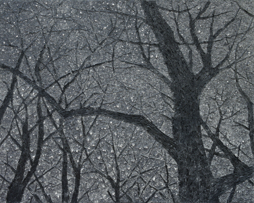 윤경 작가노트 윤경의 잿빛 나무들은 깊은 밤 속에서 중생의 기쁨을 맛보고 겨울의 시련에서 인생의 참모습을 찾아내며, 상처 입은 나무에서 새 생명을 발견하는 하나의 역설을 말하고 있다. (서성록 안동대 명예교수 평론 중에서)