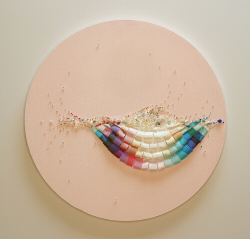 전선화 作_Emotional gap_50x50cm_Fabric, Stone, Oil on Canvas_2023