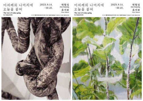 최근 그 어느 때보다 성대한 축제를 이어오고 있는 미술시장은, 그 화려함이 무색하게도 유사동형의 작업으로 포화된 상태이다. 시대정신이 부재한 시대를 그린 단말마와 같은 이미지 작업, 투자 가치로서 선별되는 작가와 작품, 관람객의 여가생활과 SNS에 치우친 전시기획은 예술 특유의 독자 노선에서 빠르게 이탈하고 있다. 이러한 가운데 박현성과 윤석원은 미술이 시작되었던 미메시스적 경험의 재현에 천착하며 미술의 종별성에 내기를 거는 작업을 보여준다. 갤러리 지우헌은 시시각각 변하는 현대사회의 시간을 이어 붙이는 두 작가의 전시 《어저께의 나머지에 오늘을 붙여(The rest of today is going to tomorrow)》 를 개최한다.
