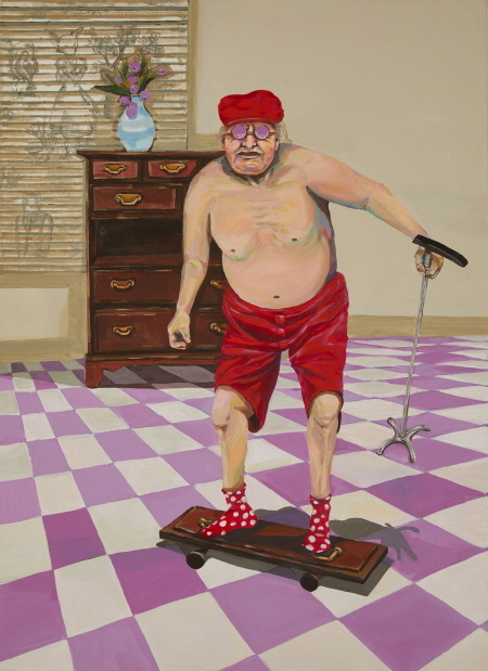 작가노트 나이가 들어가면서 사회적 역할의 중요성이 강조되고 개인의 존재보다는 역할이 강조되는 경향에 대해 의문을 품고 이 것에 대한 역설의 작업을 하고 싶었습니다. 사회적인 시선을 벗어난 실버들은 그들의 나이 듦을 수용하면서도 즐겁게 삶을 즐기고 있는 모습을 연출하였습니다. 그들은 자신의 한계를 인식하면서도 상상력을 발휘하여 현실의 제약을 뛰어넘어 유희를 즐기는 모습입니다. 그들이 자신의 경험과 지혜를 바탕으로 여전히 삶의 주인공이며, 개인적인 색채를 가진 독특한 존재로서 사회에서 여전히 존중 받을 수 있음을 나타내고 싶었습니다. 보통 나이가 들어간다는 말에 대해서 아쉬운 느낌이 먼저 들거나, 이제 예전 같지 않기 때문에 더이상 뭘 할 수 없게 된다는 말이 뒤따릅니다. 하지만 만약 나이가 들어가는 모습이 이렇게 긍정적이고 유쾌한 모습이라면, 제가 나이가 들어가는 것에 대한 두려움보다 설렘으로 기다려질 수도 있겠다는 생각을 했습니다. 그리고 또한 지금의 기성세대에게 지금도 늦지 않았고 오히려 각자의 삶을 살아가며 얻은 지혜와 경험이 더해져 더 풍부한 생활을 할 수 있다는 위로와 응원을 전하고 싶었습니다. 그리고 나의 작품을 통해 더욱 사람과 사람, 세대와 세대 간의 관계가 더욱 유연해지고 해학과 위트가 넘치는 삶으로 한발짝 다가갈 수 있었으면 좋겠습니다. 나의 작품으로 현재를 더욱 소중히 여기고 타자와의 공감과 순리를 이해하는 계기로 작용하기를 기대해 봅니다.