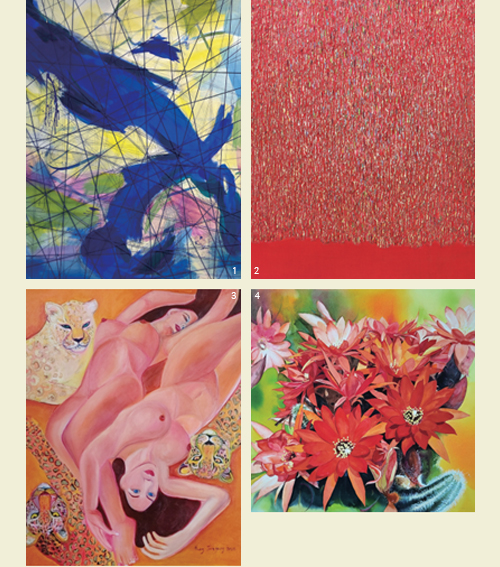 1. Hwang, Hye sung 作_HESSED23_90.9x72.7cm_Acrylic on Canvas_2023 2. Hwang, Kyung Suk 作_Life-Rul_72.7x91.0cm_Acrylic on Canvas_2023 3. Hwang, Joon Young 作_Narcissism 2022_90.9x72.7cm_Oil on Canvas_2022 4. HWANG, MI KYUNG 作_flower terapy-Passion_60.6x60.6cm_Watercolor on Paper_2023