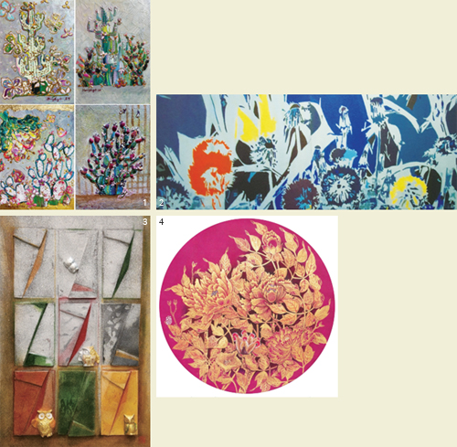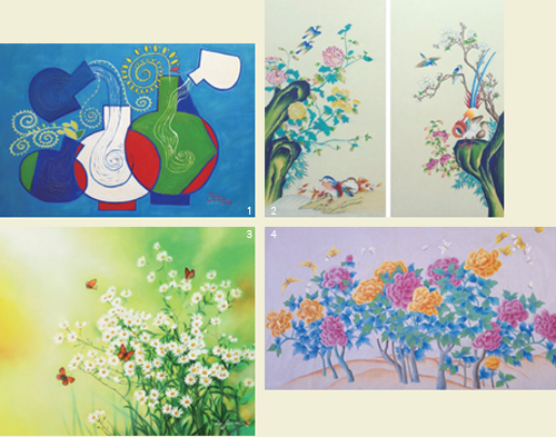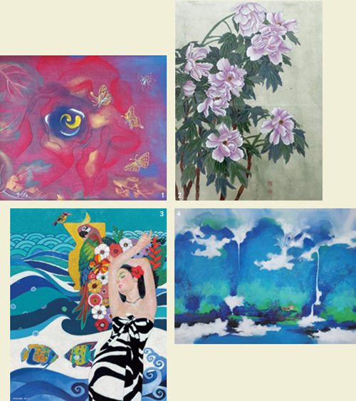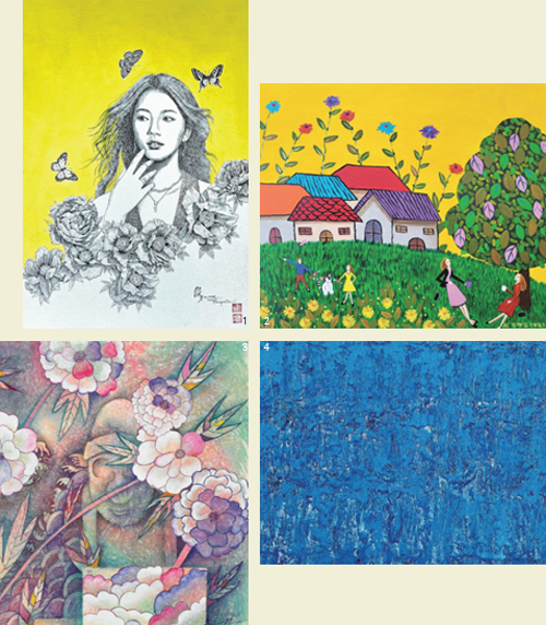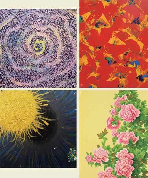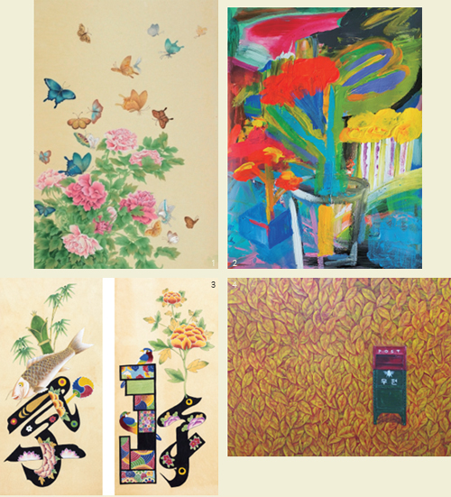 1. Lee, Sun Hee 作_Cosmic Spring_90.9x60.6cm_Oil on Canvas_2023 2. Lee, Soon Deok 作_a picture of a flower & bird_47.0x91.0cmx2_coloring on Korean paper_2023 3. Lee, Sun Mi 作_Flower field filled with the scent of grass_60.6x50.0cm_Oil on Canvas_2023 4. Lee, Yeo Sim 作_Peony painting_90.9x72.7cm_color on paper_2023