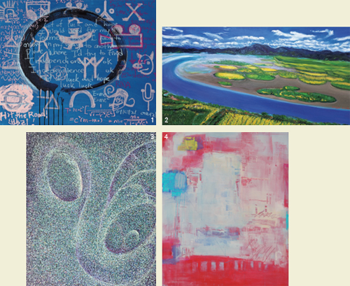 1. Kang, Ri Na 作_Big Luck_91.0x73.0cm_Acrylic on canvas_2023 2. Kang, Suk Hee 作_Suncheon Bay_120x60.0cm_Oil on Canvas_2023 3. Kang, Sin Hee 作_The wind_72.7x53.0cm_Mixed Media on Canvas_2023 4. Kim, Back Sun 作_Path of the mind_90.9x72.7cm_Acrylic on Canvas_2023