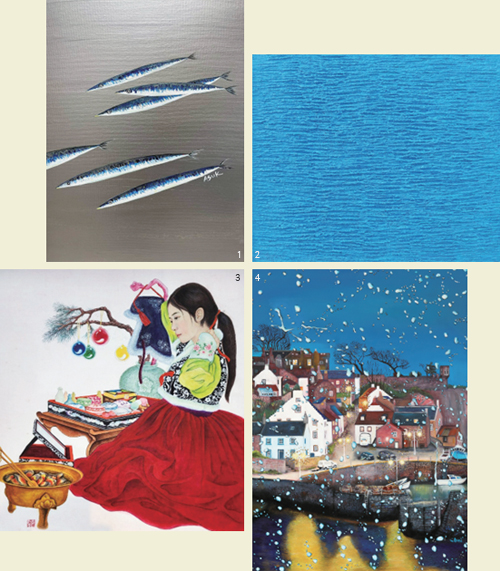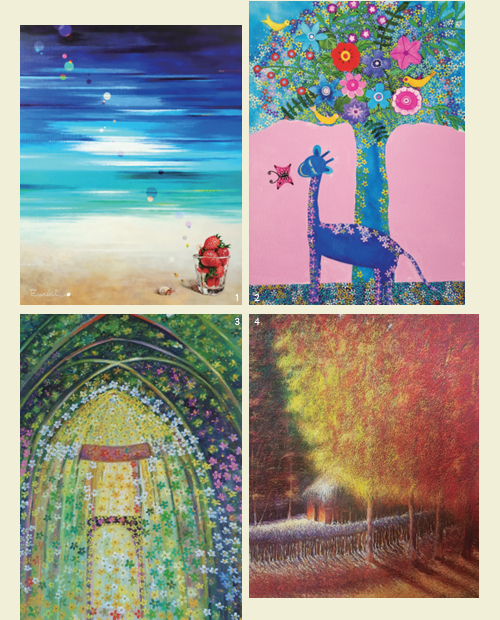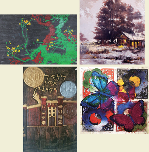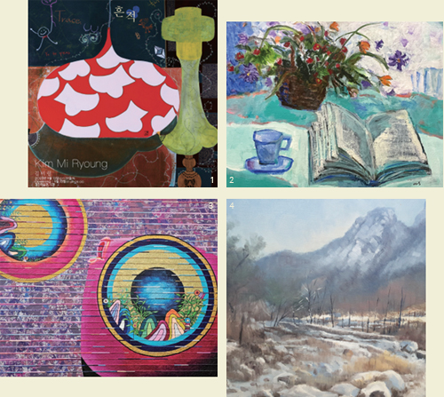 1. Kim, Mi Ryung 作_Trace_60.0x80.0cm_Oil, Mixed media_2023 2. Kim, Myoung Soon 作_Good morning_53.0x45.5cm_Acrylic on Canvas_2023 3. Kim, Na Eun 作_Happiness_90.9x72.7cm_Acrylic on Canvas_2023 4. Kim, Myung Ja 作_a winter scene_72.7x72.7cm_Oil on Canvas_2023