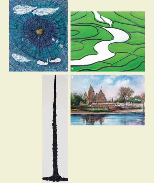 1. Kwon, Soon Ok 作_Eternal Love_72.5x60.5cm_mixed media on panel_2023 2. Kwon, Jong Sook 作_Between Happiness and Solitude 2301_90.9x72.7cm_Acrylic on Canvas_2023 3. Kyung-Hak Kim Do 作_work-N2_40.0x120cm_mixedmedia,mushroom_2022 4. Lee, Jung Soon 作_Travel to India (Kazuma)_72.7x50.0cm_Watercolor on Paper_2023