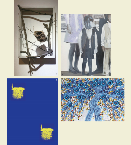 1. Seol, Hyun Seo 作_Chaekkeori_38.0x62.0cm_Korean paper_2023 2. Shin, Eun Bee 作_Forest - Journey_53.0x45.5cm_Oil on Canvas_2023 3. Shim, Ok Yee 作_여명즉성(黎明卽醒, 새벽을 깨우리로다)_45.5x45.5cm_linen canvas, acrylic_2023 4. Shin, Eun Sook 作_mimesis 12_45.5x27.3cm_Mixed media_2023