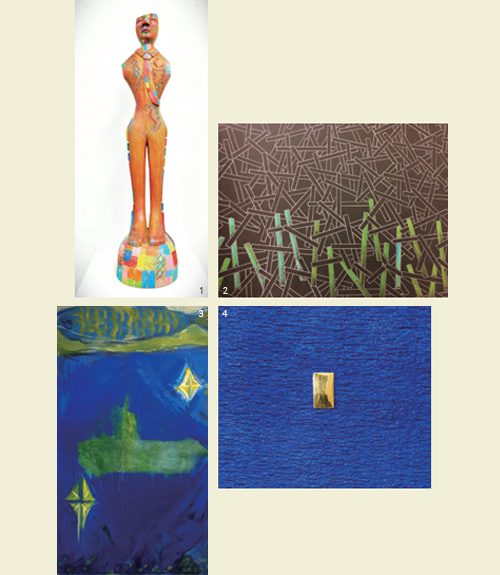 1. Woo, Kyung Mee 作_boast_90.9x72.7cm_Oil on Canvas_2023 2. Yang, Deok Sun 作_return to heaven_38.0x100cm_2023 3. Woo, Seog Yong 作_between desire and boredom_90.9x60.6cm_Metal Layered_2023 4. Yang, Min Young 作_hope_19.0x18.0cm_Combination soil, green oil, matte oi_2023