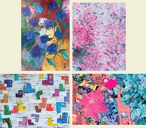 1. Park, Eun Kyoung 作_Flowers and Women_36.0x51.0cm_paper, acrylic_2023 2. Park, Gil Woo 作_Nightingale_90.9x72.7cm_Oil on Canvas_2023 3. Park, Hye Lyun 作_Time & Space_90.9x65.1cm_Mixed media_2023 4. Park, In Suk 作_The power of love makes everything possible_72.7x50.0cm_mobile art_2023